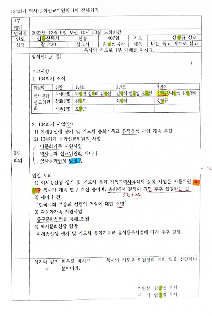 2022년 12월 9일 전남노회에서 전남노회역사문화문화선교위원회 주관으로