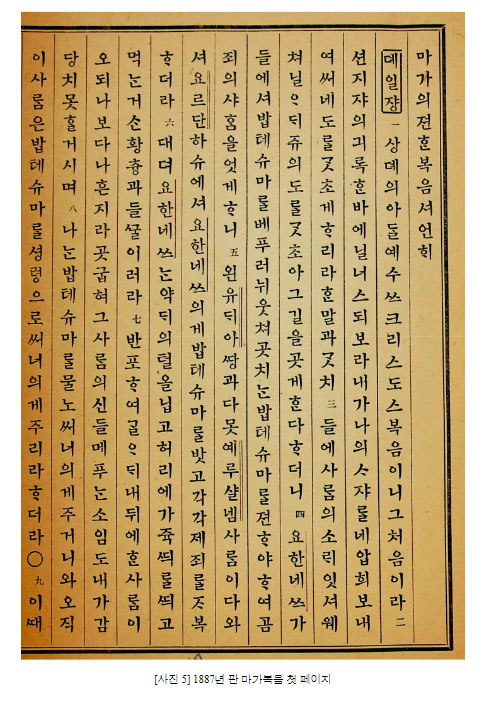 * 사진 출처] 옥성득, 1887년 ‘신약마가젼복음셔언해’고찰, 2016