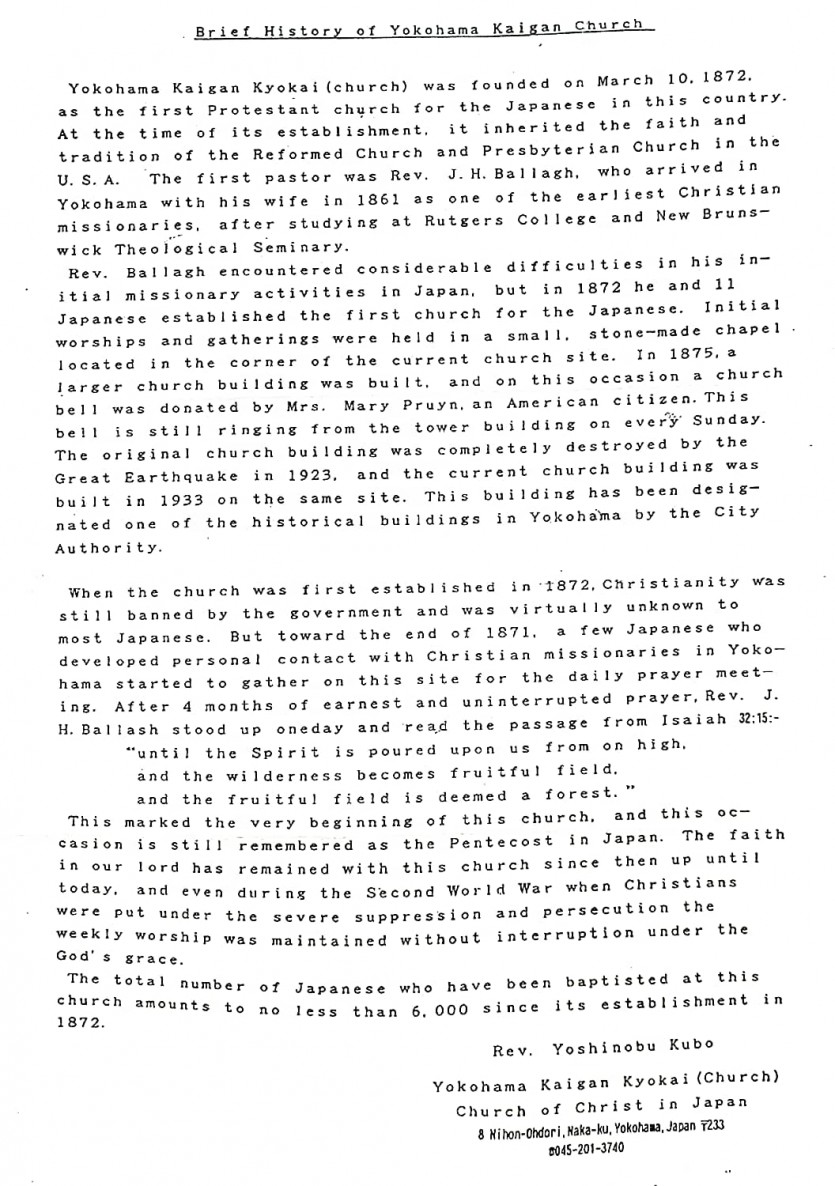 [출처 : 요코하마 카이간교회, '세계교회탐방', 오주현, 호남신학대학교, 2011 ]
