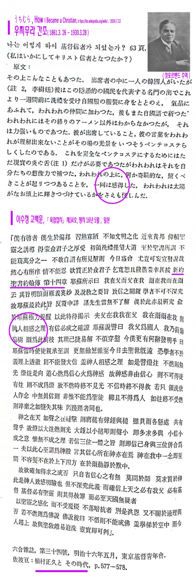 전날, 우찌무라 간조(内村鑑三)는