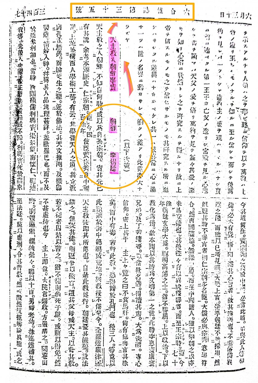 1.天主敎人朝鮮史實,『六合雜誌』,1883年(明治16년)6月30日第35號