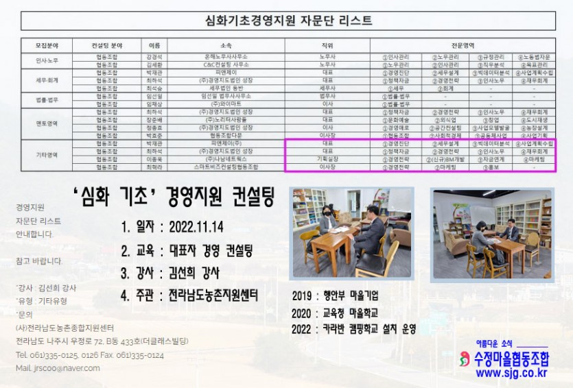 수정마을협동조합이 (사)전라남도농촌지원센터 주관으로 실시하는