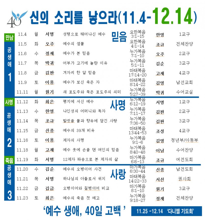 공지 | 40일 신음(神音) 페이지 정보 작성자 최고관리자 작성일24-11-02 23:21 조회1,372회 댓글0건 관련링크 이전글 다음글 목록 글쓰기 본문 시작되는 40일 고백. *예수님 생애를 본 받는 기도회 되기를 소망합니다. SNS공유 댓글목록 등록된 댓글이 없습니다. 이전글 다음글 목록 글쓰기