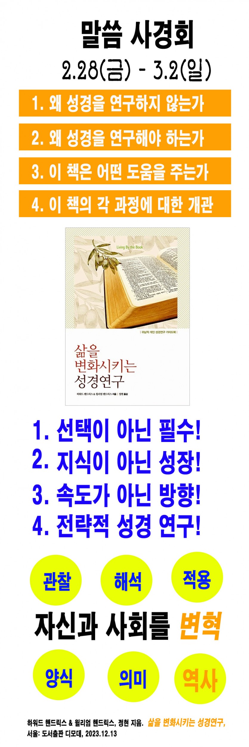 공지 | 말씀의 꽃(2.28) 페이지 정보 작성자 최고관리자 작성일25-02-28 01:42 조회1,082회 댓글0건 관련링크 이전글 다음글 목록 글쓰기 본문 오는 2.28일(금) 오후 7시부터 3.2(일) 주일 오후 3시까지 말씀의 꽃, 사경회를 실시합니다. 이번 사경회를 통하여 성경을 동역자로 삼고 자신과 사회를 변혁시키는 믿음의 명장이 되시기를 기도합니다. 오늘 저녁 7시에 뵙겠습니다. 오주현 목사 드림. SNS공유 댓글목록 등록된 댓글이 없습니다. 이전글 다음글 목록 글쓰기