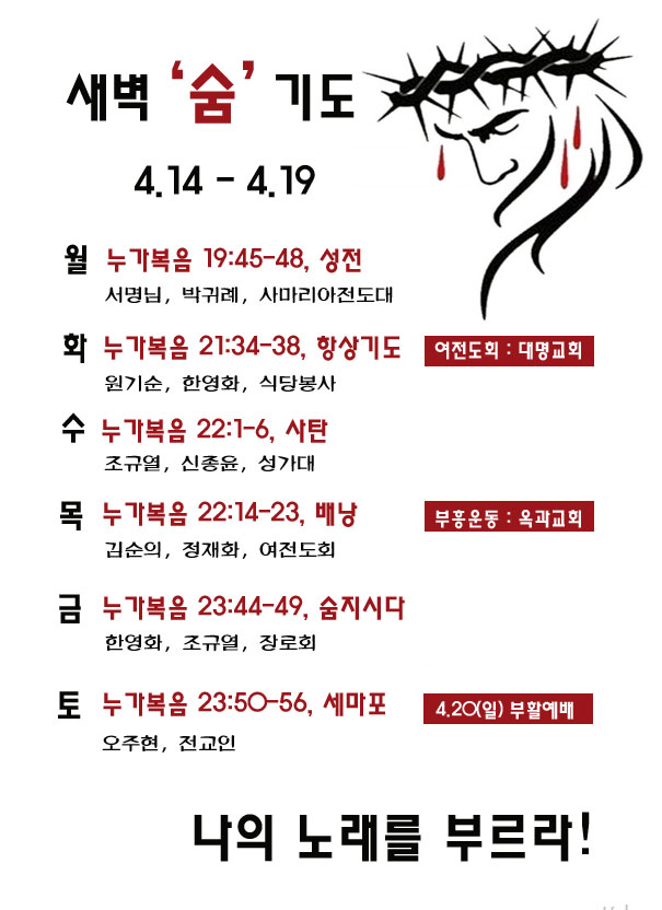 공지 | 새벽 '숨' 기도 페이지 정보 작성자 최고관리자 작성일25-04-12 23:04 조회1,034회 댓글0건 관련링크 이전글 다음글 목록 글쓰기 본문 *고난 주간 함께 경건한 모습으로 새벽에 만나 뵙겠습니다. SNS공유 댓글목록 등록된 댓글이 없습니다. 이전글 다음글 목록 글쓰기
