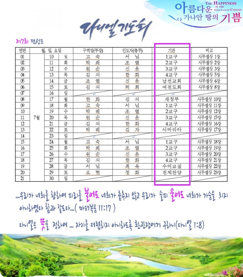 세이레 편성표(7회) 페이지 정보 작성자 최고관리자 작성일23-07-15 16:25 조회1,111회 댓글0건 관련링크 이전글 다음글 목록 글쓰기 본문 지난 주 이어 21일 기도회 실시합니다. 편성표 안내합니다. SNS공유 댓글목록 등록된 댓글이 없습니다. 이전글 다음글 목록 글쓰기