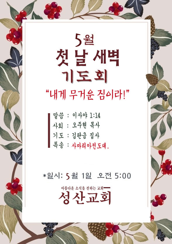 공지 | 5월 첫 날 페이지 정보 작성자 최고관리자 작성일26-04-27 06:35 조회15회 댓글0건 관련링크 다음글 목록 글쓰기 본문 * SNS공유 댓글목록 등록된 댓글이 없습니다. 다음글 목록 글쓰기