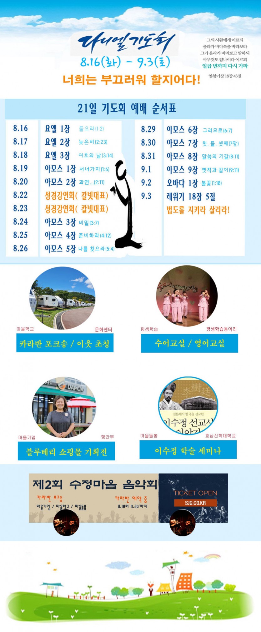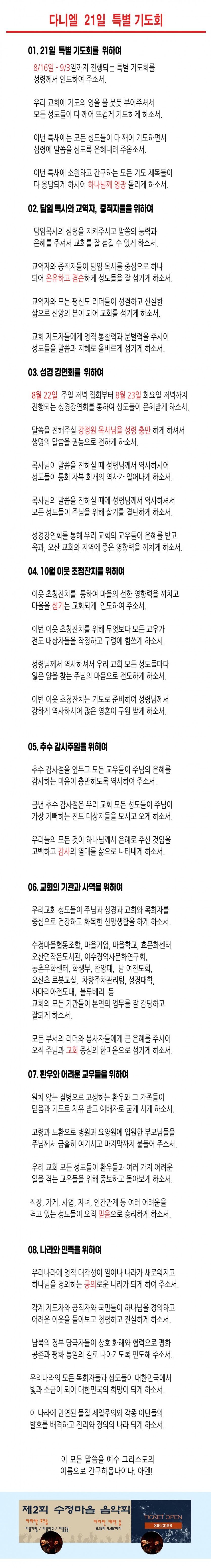 그러므로( 다니엘 12일차 ) 페이지 정보 작성자 최고관리자 작성일22-08-29 17:56 조회1,343회 댓글0건 관련링크 이전글 다음글 목록 글쓰기 본문 오늘 밤은 다니엘 12일차 기도회입니다. 우리의 뿔이 아닌, 하나님의 구원의 뿔이 인도하기를 소망합니다. 쓴 쑥을 공의의 열매로 바꾸기를 기도합니다. 꼭! 뵙겠습니다. 오주현 목사 드림. SNS공유 댓글목록 등록된 댓글이 없습니다. 이전글 다음글 목록 글쓰기