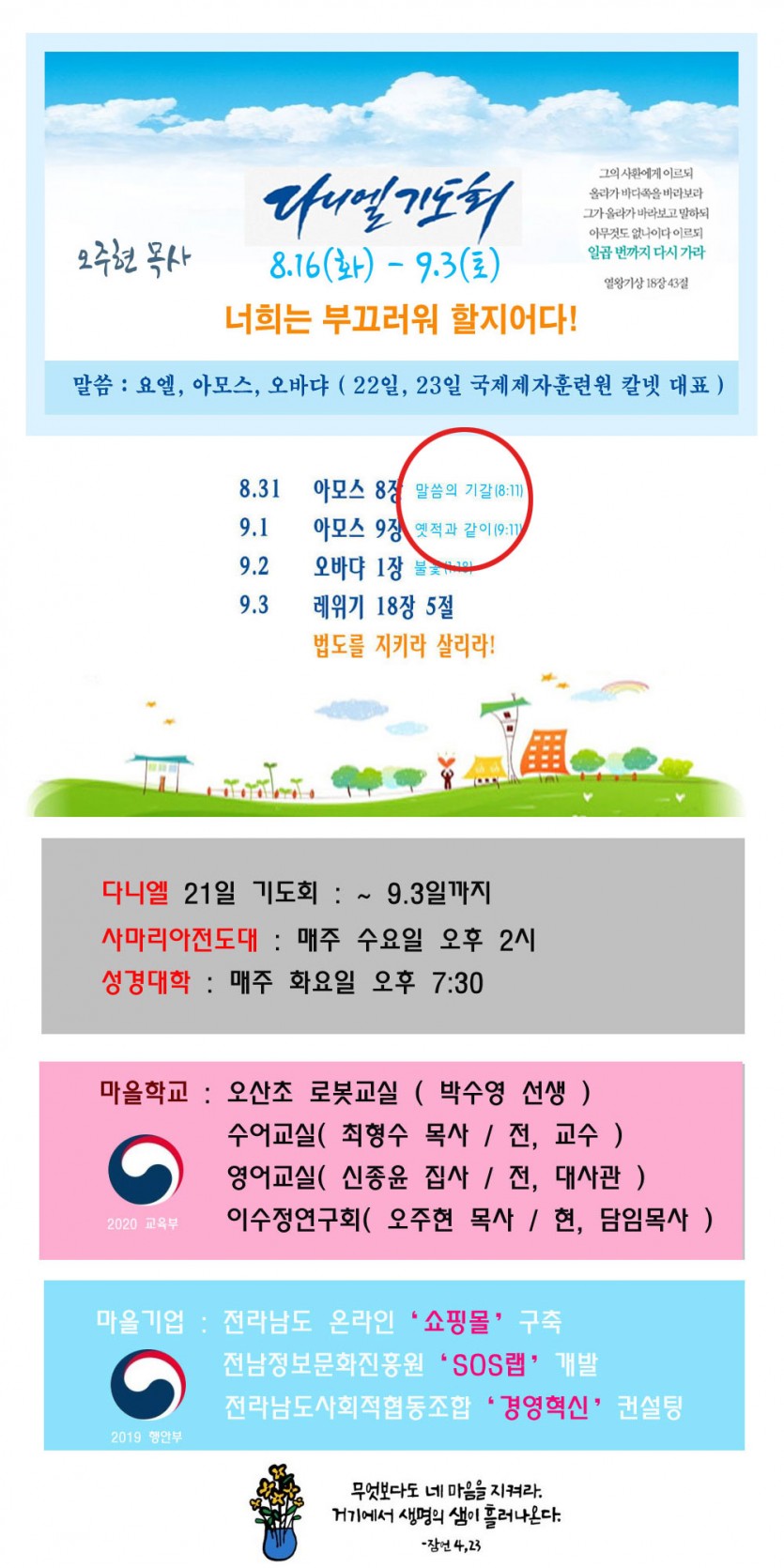 말씀의 기갈(다니엘 14일차) 페이지 정보 작성자 최고관리자 작성일22-08-31 17:23 조회1,289회 댓글0건 관련링크 이전글 다음글 목록 글쓰기 본문 하나님! 말씀하옵소서, 왜! 절기가 애통으로, 애굽 강이 뛰놀다 낮아졌나이까?! 여호와의 말씀이니라. 양식없는 주림이 아니요, 물없는 길함이 아니라, 말씀의 기갈이라. 그러시면, 말씀 하옵소서. 우리가 듣겠나이다. 오주현 목사 드림. SNS공유 댓글목록 등록된 댓글이 없습니다. 이전글 다음글 목록 글쓰기