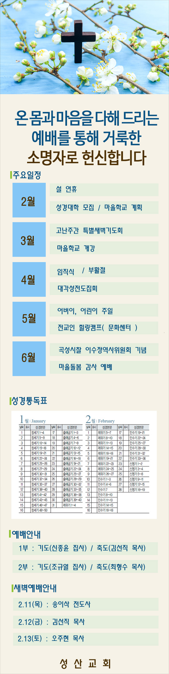 2021.2.7 예배 안내 페이지 정보 작성자 최고관리자 작성일21-02-06 17:18 조회1,943회 댓글0건 관련링크 이전글 다음글 목록 글쓰기 본문 . SNS공유 댓글목록 등록된 댓글이 없습니다. 이전글 다음글 목록 글쓰기