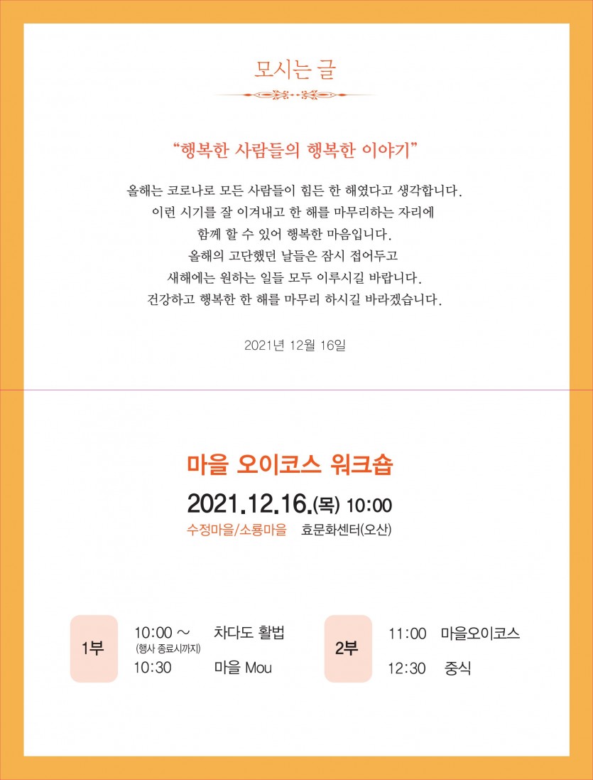 마을 오이코스 워크숍 개최 안내