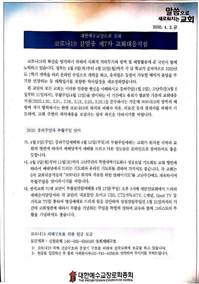 총회 코로나19 7차 대응지침