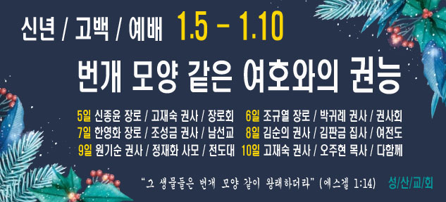 공지 | 신년 고백 예배 페이지 정보 작성자 최고관리자 작성일26-01-03 16:35 조회397회 댓글0건 관련링크 이전글 다음글 목록 글쓰기 본문 * SNS공유 댓글목록 등록된 댓글이 없습니다. 이전글 다음글 목록 글쓰기
